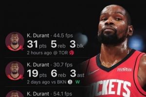 杜兰特火箭生涯4场比赛得分破百 队史第二快仅次于哈登!