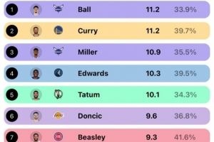 库里&三球领衔!上赛季有5人场均出手10+三分 联盟历史首次