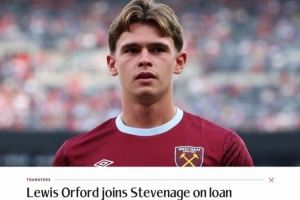 官方:西汉姆19岁中场奥福德租借至英甲斯蒂文尼奇 租期一个赛季