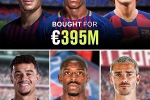 巴萨在2017/18赛季2.2亿欧卖掉内马尔之后,用这笔钱分别在夏窗和冬窗拿下了登贝莱和库蒂尼奥,但后来两人的表现也无需赘述,还给巴萨的财政造成了巨大负担。